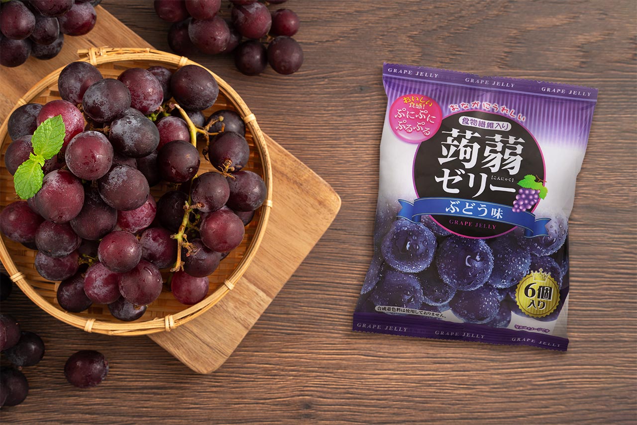 砂糖・異性化液糖(国内製造)、砂糖、ぶどう果汁、デキストリン、こんにゃく粉/ゲル化剤(増粘多糖類)、酸味料、pH調整剤、香料