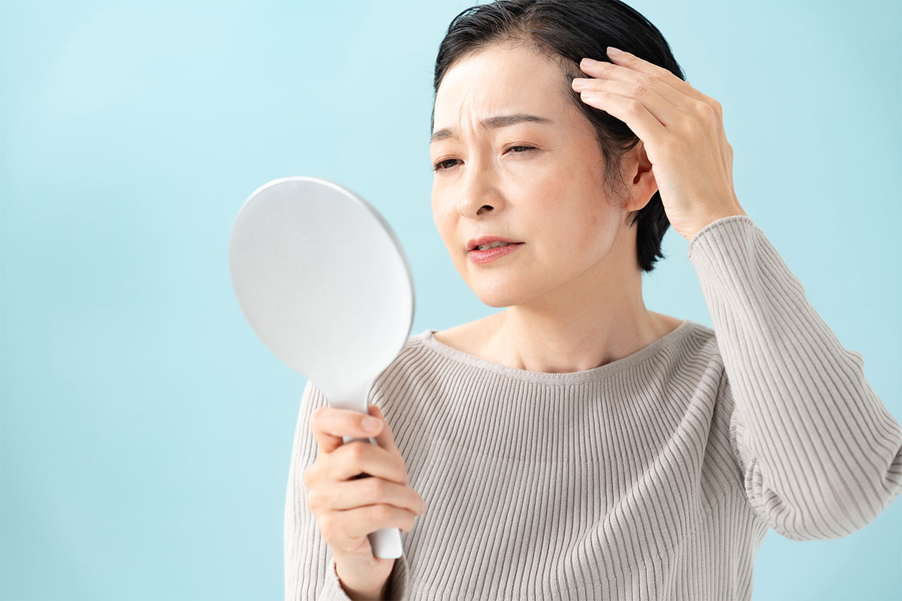 自然になじむダークブラウンカラーで、生え際にちらつく部分白髪隠しにも