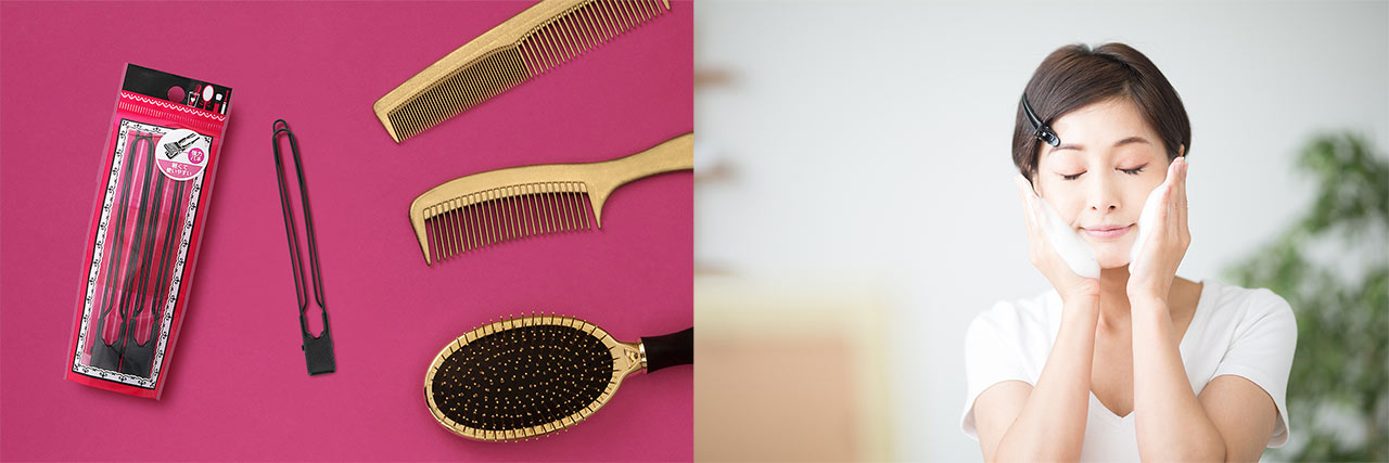 (左)「髪に跡がつかないクリップ」 (右)「前髪クリップ」 しっかりとまるのに、跡がつきにくいのがうれしい♪