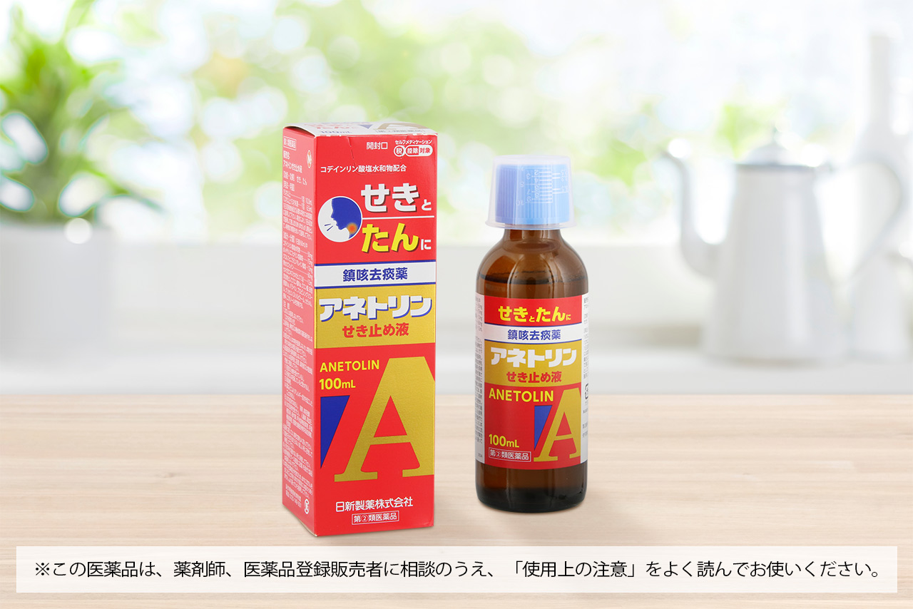 咳が続くと体力を消耗し、日常生活に支障をきたしてしまうことも… そんなときは「アネトリンせき止め液」