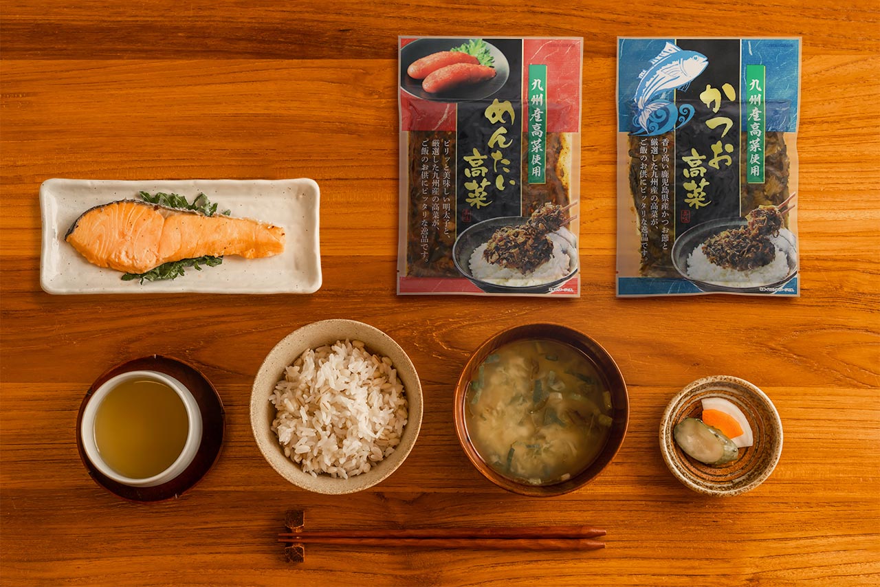 香り高い鹿児島県産かつお節と厳選した九州産の高菜が、ご飯のお供にピッタリな逸品です。