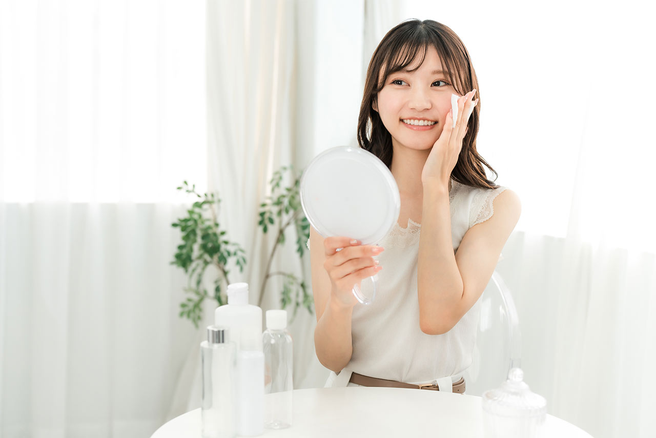 コットンで優しく拭き取るだけ。