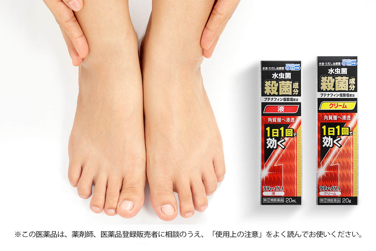 水虫のケアは、早めが肝心。毎日続けやすい処方、「ラティーノXA」シリーズ。