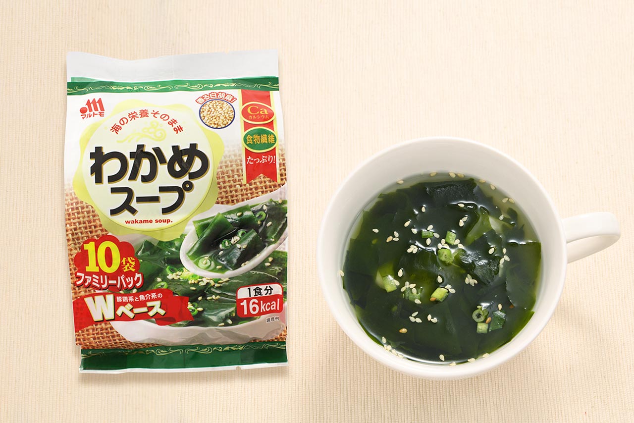 1.わかめスープ1袋をカップに入れ、150ccのお湯を注ぎます。