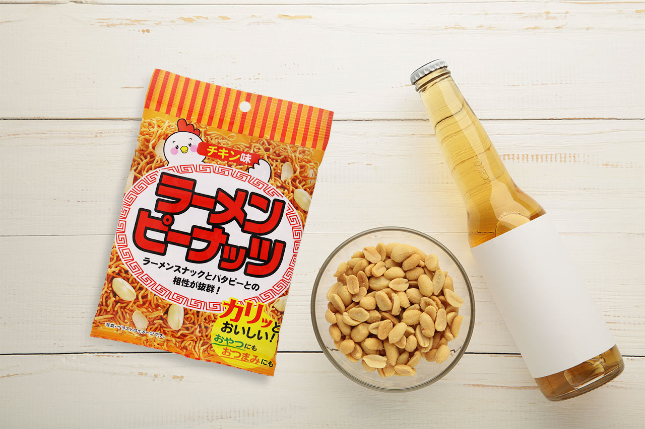 小麦粉(国内製造)、落花生(中国)、パーム油、肉エキス、しょうゆ、ラード、食塩、砂糖、野菜エキス、酵母エキス、香辛料/調味料(アミノ酸等)、酸味料、酸化防止剤(ビタミンE)、カラメル色素、(一部に小麦・落花生・大豆・鶏肉を含む)