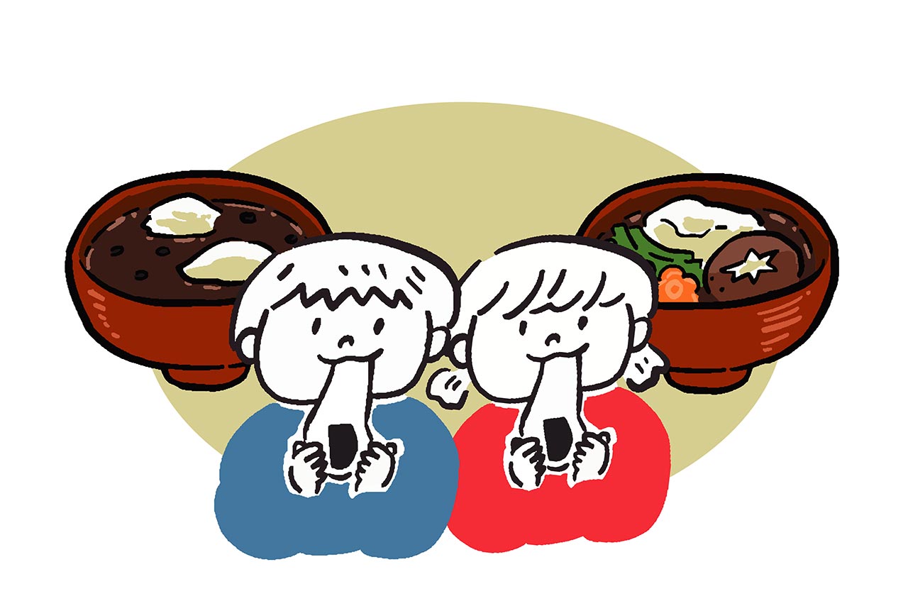 水の中にもちを入れ火にかけて沸とうしたら弱火にして2分くらいお待ちください。やわらかくなったらお召し上がりください。